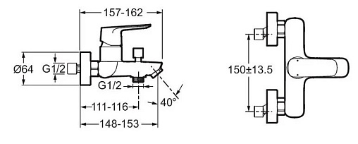 Настенный смеситель July+ неповоротный излив, с выходом на душ (без лейки), Jacob Delafon