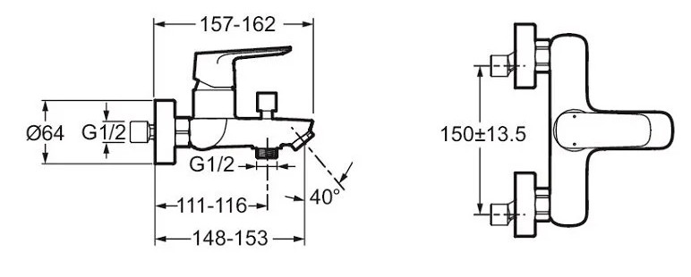 Настенный смеситель July+ неповоротный излив, с выходом на душ (без лейки), Jacob Delafon