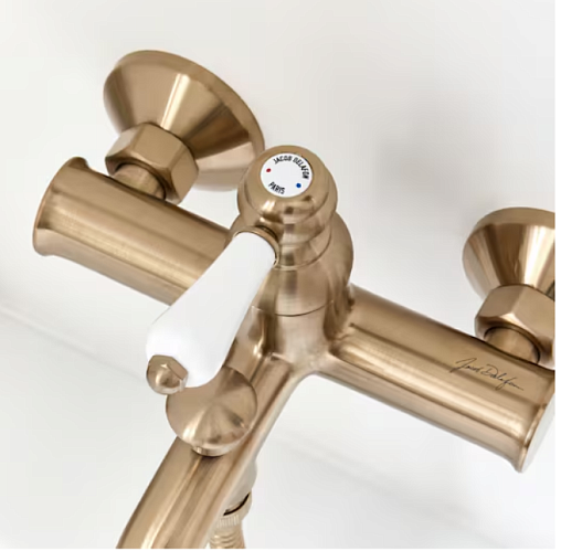 Louise, настенный смеситель, неповоротный излив, с выходом на душ (без лейки), золото, матовое, арт. E24363-BCN, Jacob Delafon