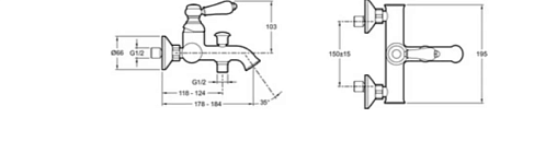 Louise, настенный смеситель, неповоротный излив, с выходом на душ (без лейки), чёрный цвет, матовый, арт. E24363-BL, Jacob Delafon