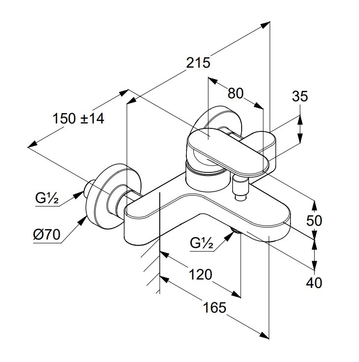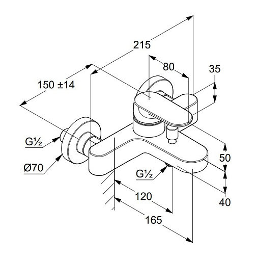 Настенный смеситель Louva неповоротный излив, с выходом на душ (без лейки), Kludi