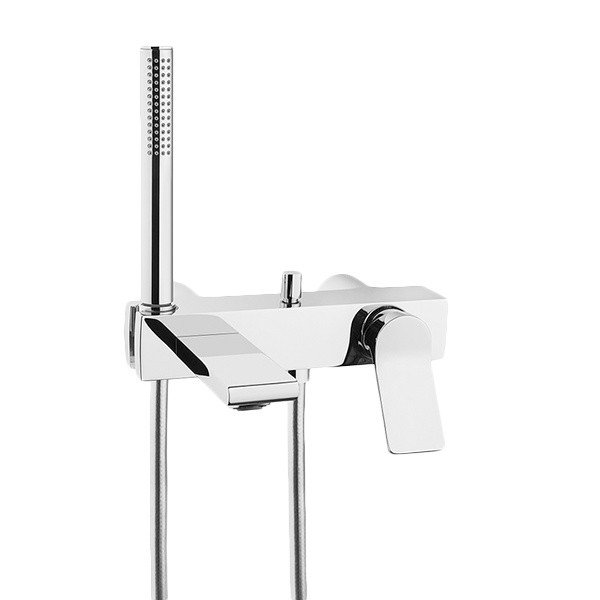 Керамический картридж, монтаж настенный, отверстия для монтажа 2, вынос излива 205 мм, подключение душевого шланга G 1/2". Ручной душ в комплекте