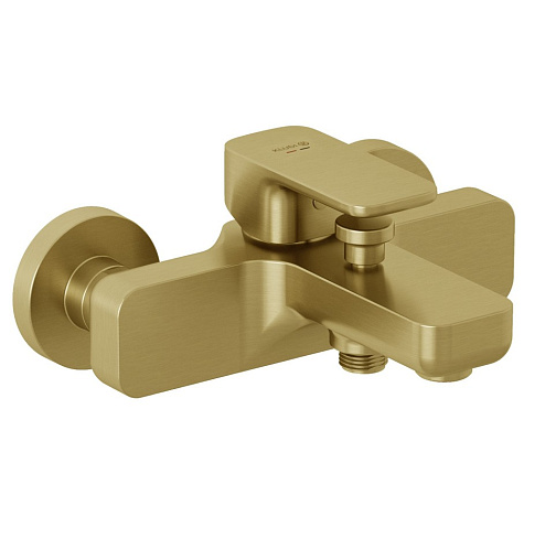 Настенный смеситель Renon брашированное, неповоротный излив, с выходом на душ (без лейки), золото, Kludi