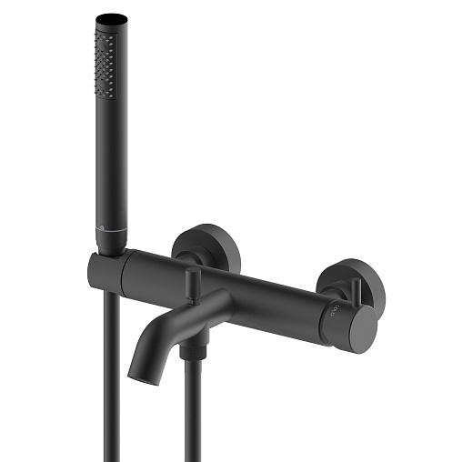 Teo, настенный смеситель, неповоротный излив, лейка в комплекте, чёрный цвет, матовый, арт. Z00724.073, Bossini