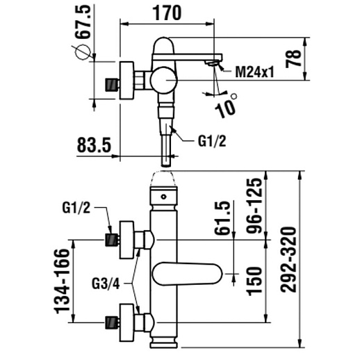 The New Classic, настенный смеситель, поворотный излив, лейка в комплекте, арт. HF900560100600, Laufen