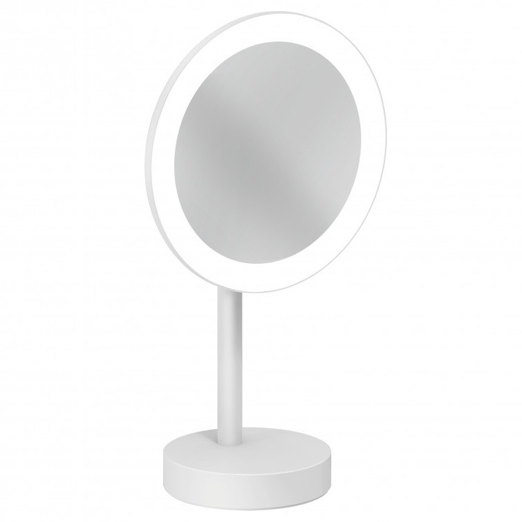 Vela R, настольное косметическое зеркало для ванной, цвет белый, с подсветкой, матовый, одностороннее, арт. 5899553F, Kludi