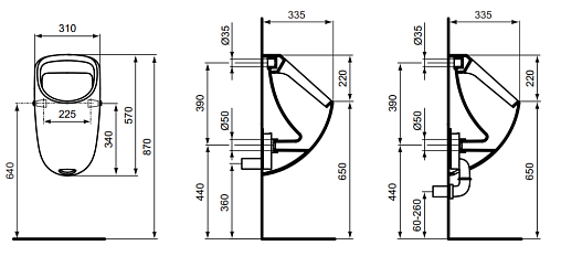 Писсуар Connect задняя подводка, отверстие внизу, питание от батареи, подвод воды сзади, Ideal Standard