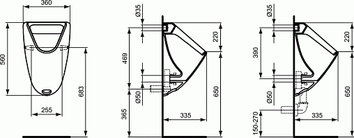 Писсуар Eurovit подвод воды сзади, Ideal Standard