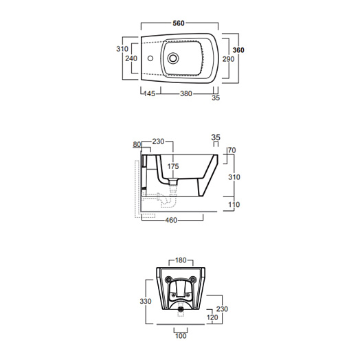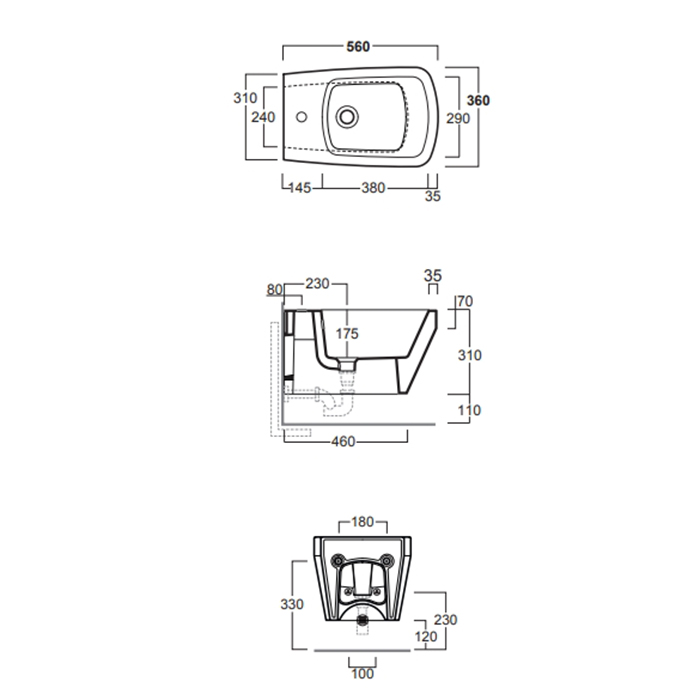 Биде Baden baden 36х56 см, цвет белый матовый, подвесное, без крышки, Simas