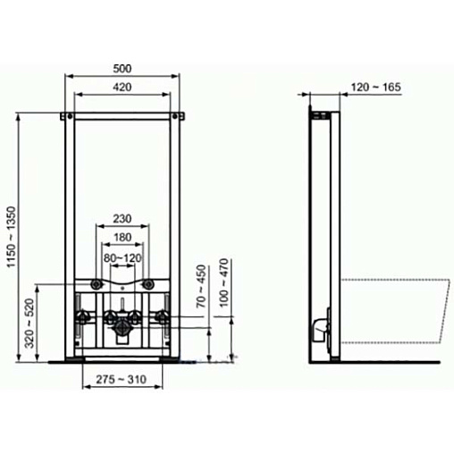 Габариты рамы для монтажа (ШхВхГ): 500х1350х165 мм.