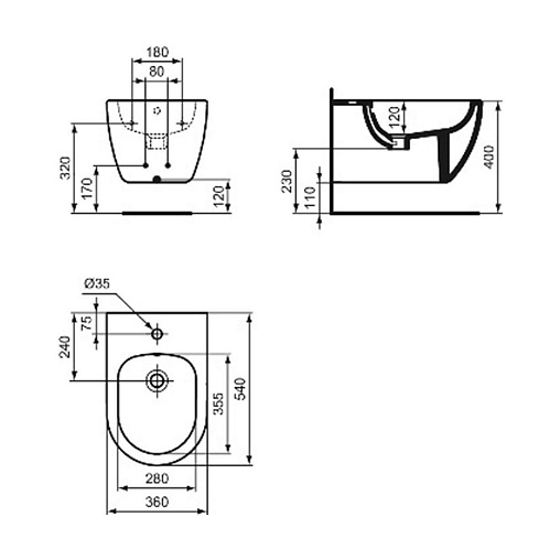 Биде Ellisse 36х54 см, подвесное, без крышки, Ideal Standard