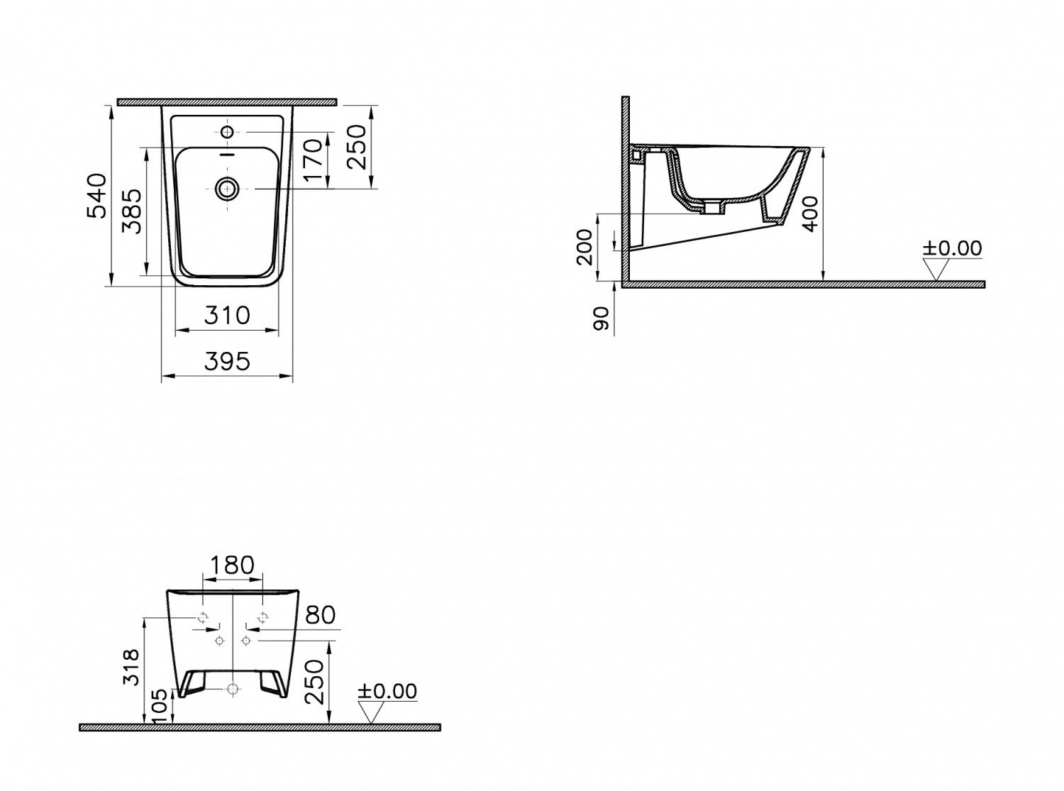 Биде Equal 39,5х54 см, подвесное, без крышки, Vitra