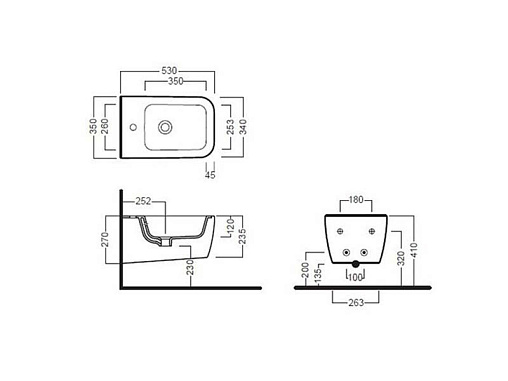 С отверстием для смесителя (одно готовое отверстие для смесителя), с отверстием перелива, с крепежом в комплекте, цвет - белый (глянцевый).