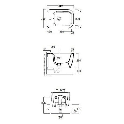 Биде Henges 38х55 см, цвет черный матовый, подвесное, без крышки, Simas
