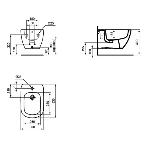 Биде Idealmood 36х53 см, подвесное, без крышки, Ideal Standard
