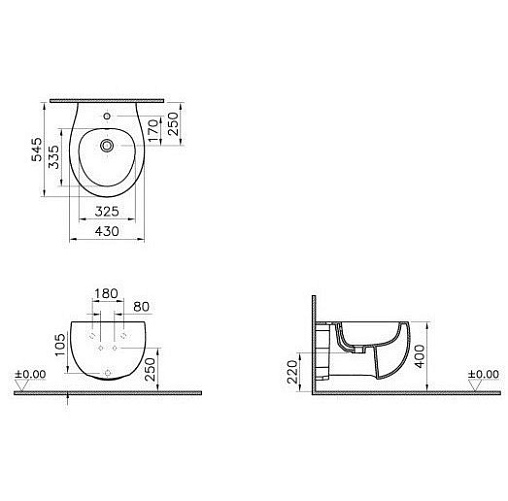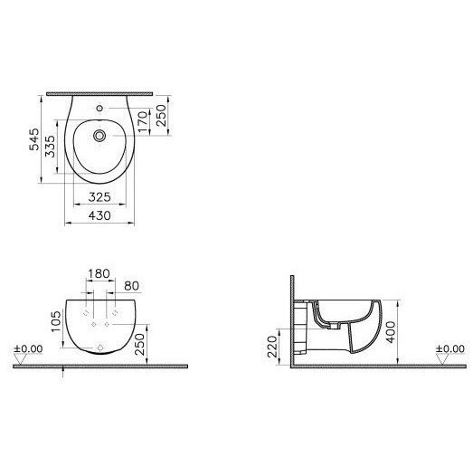 Биде Memoria 43х54,5 см, подвесное, без крышки, Vitra