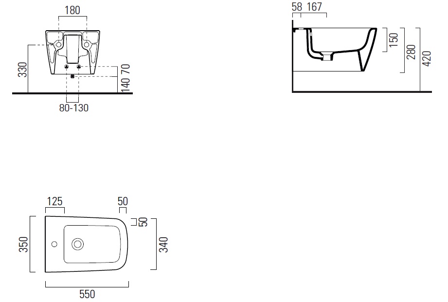 Биде Nubes 35х55 см, черный матовый, подвесное, без крышки, GSI