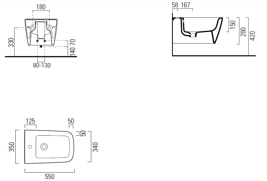 Биде Nubes 35х55 см, подвесное, без крышки, GSI