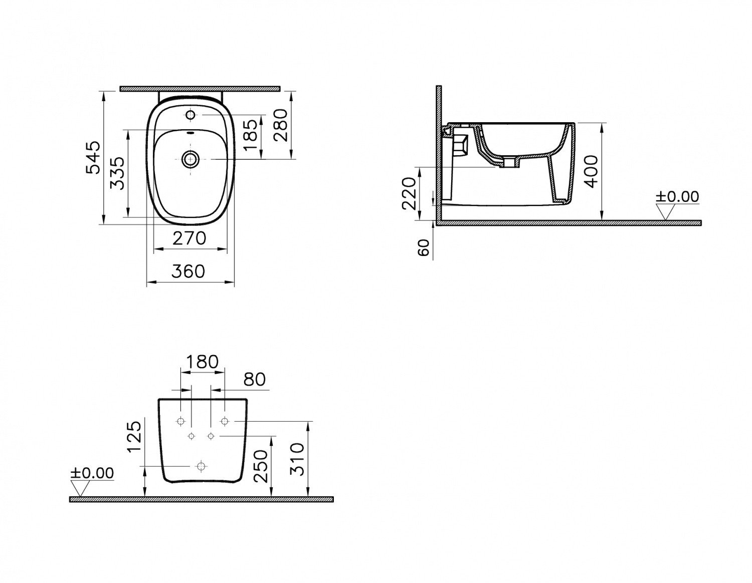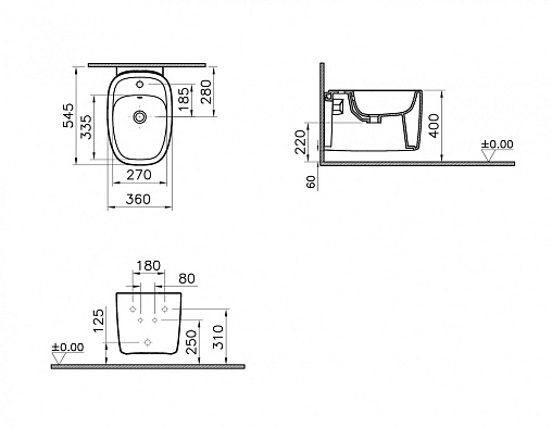 Plural 36х54,5см, биде, подвесное, без крышки, арт. 7831B403-0288, Vitra