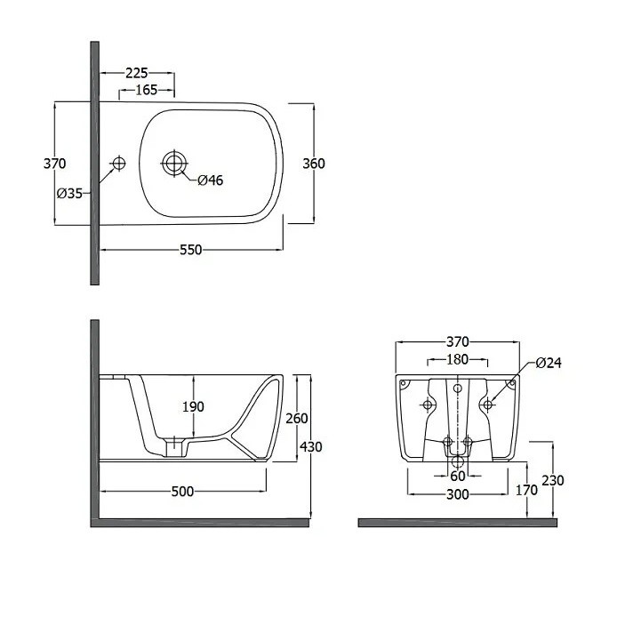 Биде Resa 37х55 см, подвесное, без крышки, Kludi