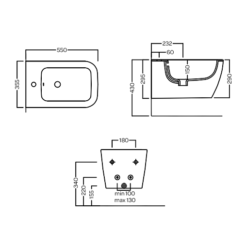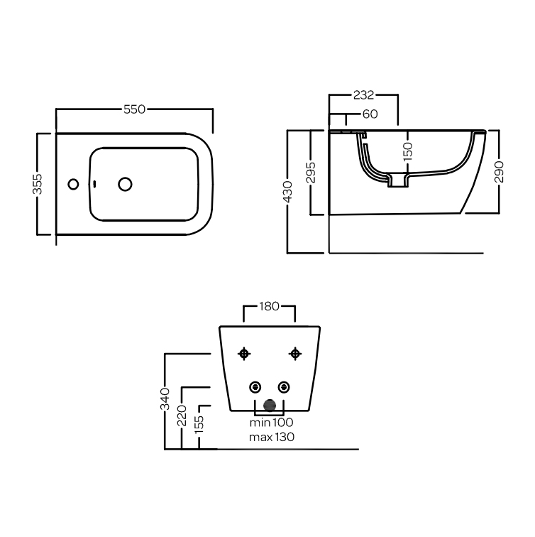 Биде Tecna 35,5х55 см, подвесное, без крышки, Hatria