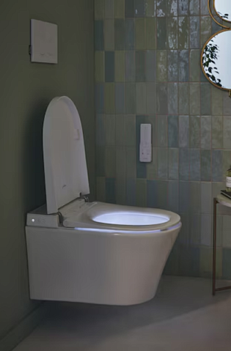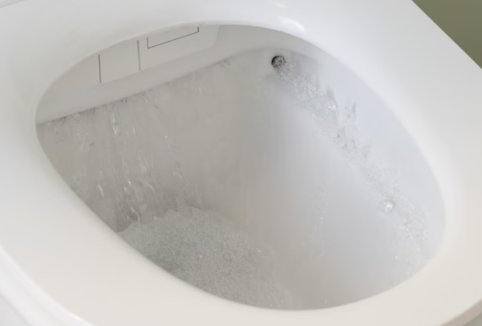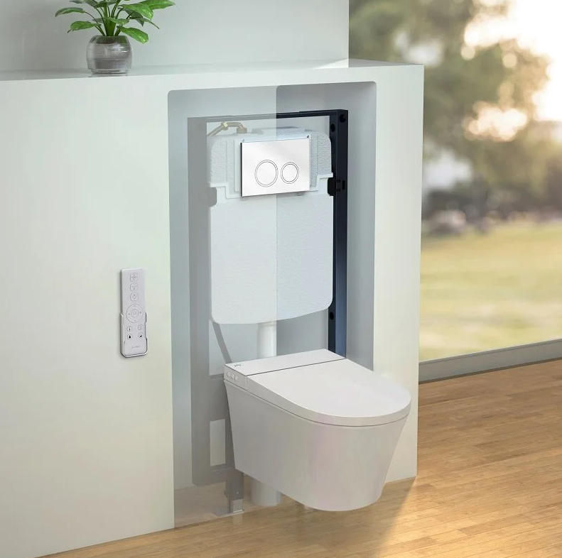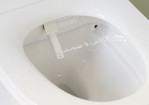 Унитаз автоматически смывается после использования или на пульте дистанционного управления.