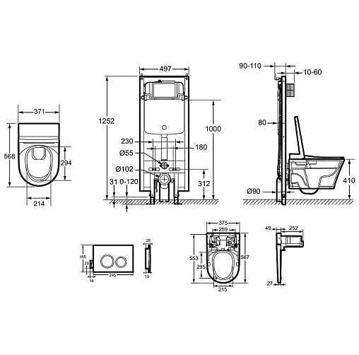 Подвесной электронный унитаз Seine 37,5х56,8 см, с инсталляцией, клавиша белая,, безободковый, функция биде, с сиденьем, Jacob Delafon