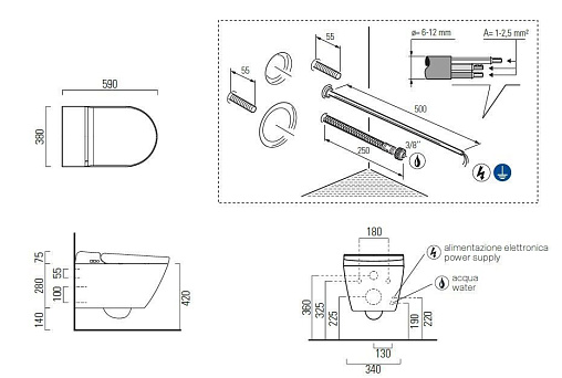 Подвесной электронный унитаз WClean 38х59 см, безободковый, функция биде, с сиденьем, тихий смыв, GSI