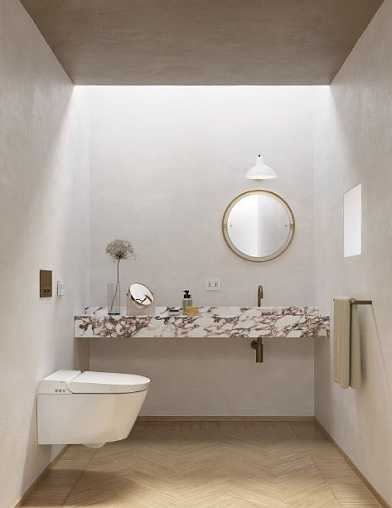 Новая система, состоящая всего из пяти элементов: унитаза из санфаянса, фиксирующей пластины, модуля электронного биде, его крышки и сидения. 26 месяцев работы, 7 команд, 54 человека, вовлеченных в создание самого функционального и гигиеничного умного туалета на рынке. Простой, революционный продукт, уделяющий особое внимание воздействию на окружающую среду.