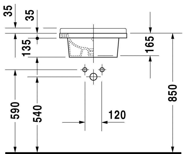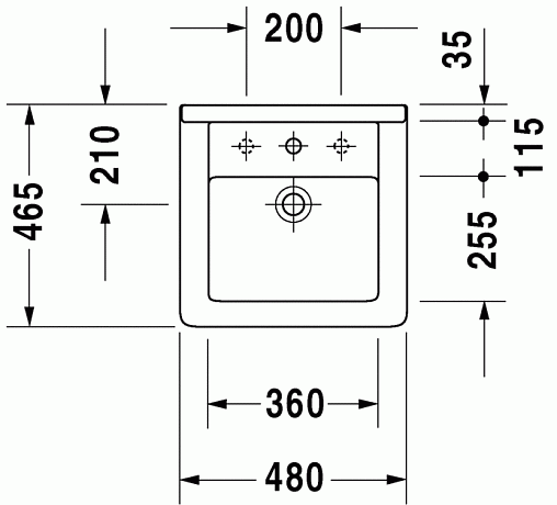 Starck 3 48х46,5х16,5см, подвесная раковина, санфарфор, с отв. под смеситель, с 1 отв. под смеситель, wondergliss, арт. 03034800001, Duravit