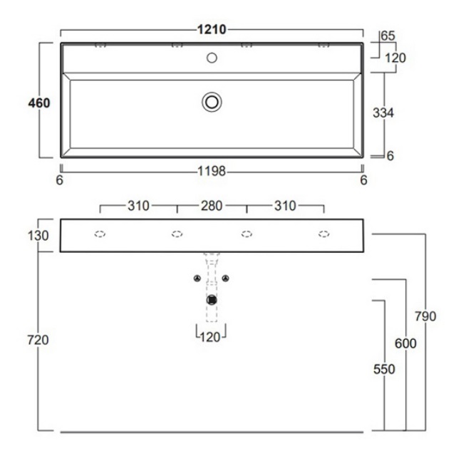 Подвесная раковина Agile 121х46х13 см, санфарфор, Simas
