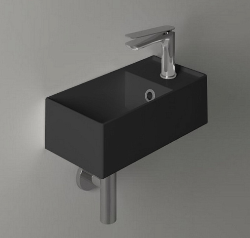 Подвесная раковина Agile 40х20х13 см, правая, санфарфор, черный матовый, с отв. под смеситель, Simas