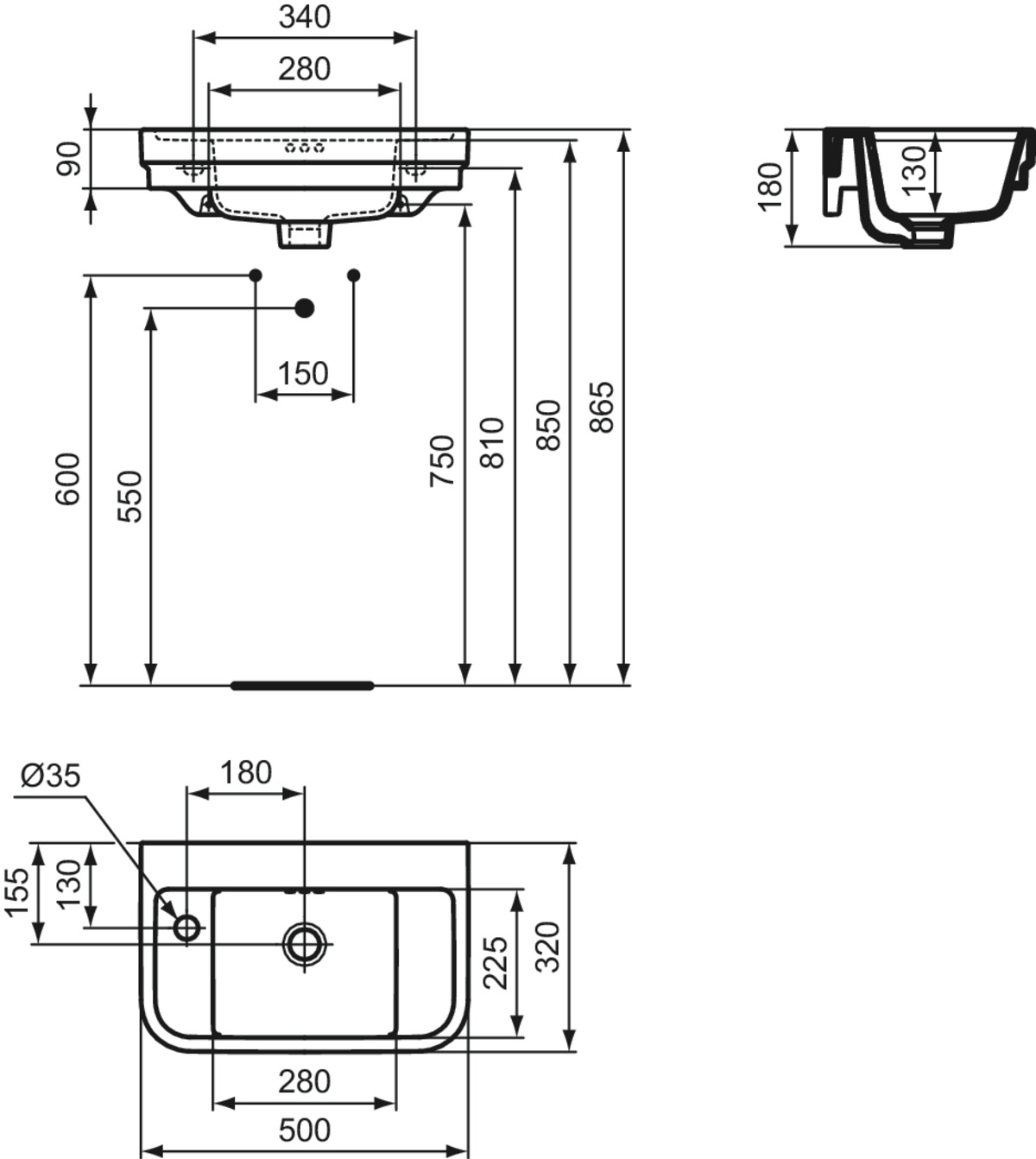 Подвесная раковина Calla 50х32х18 см, для смесителя слева, санфарфор, с отв. под смеситель, Ideal Standard