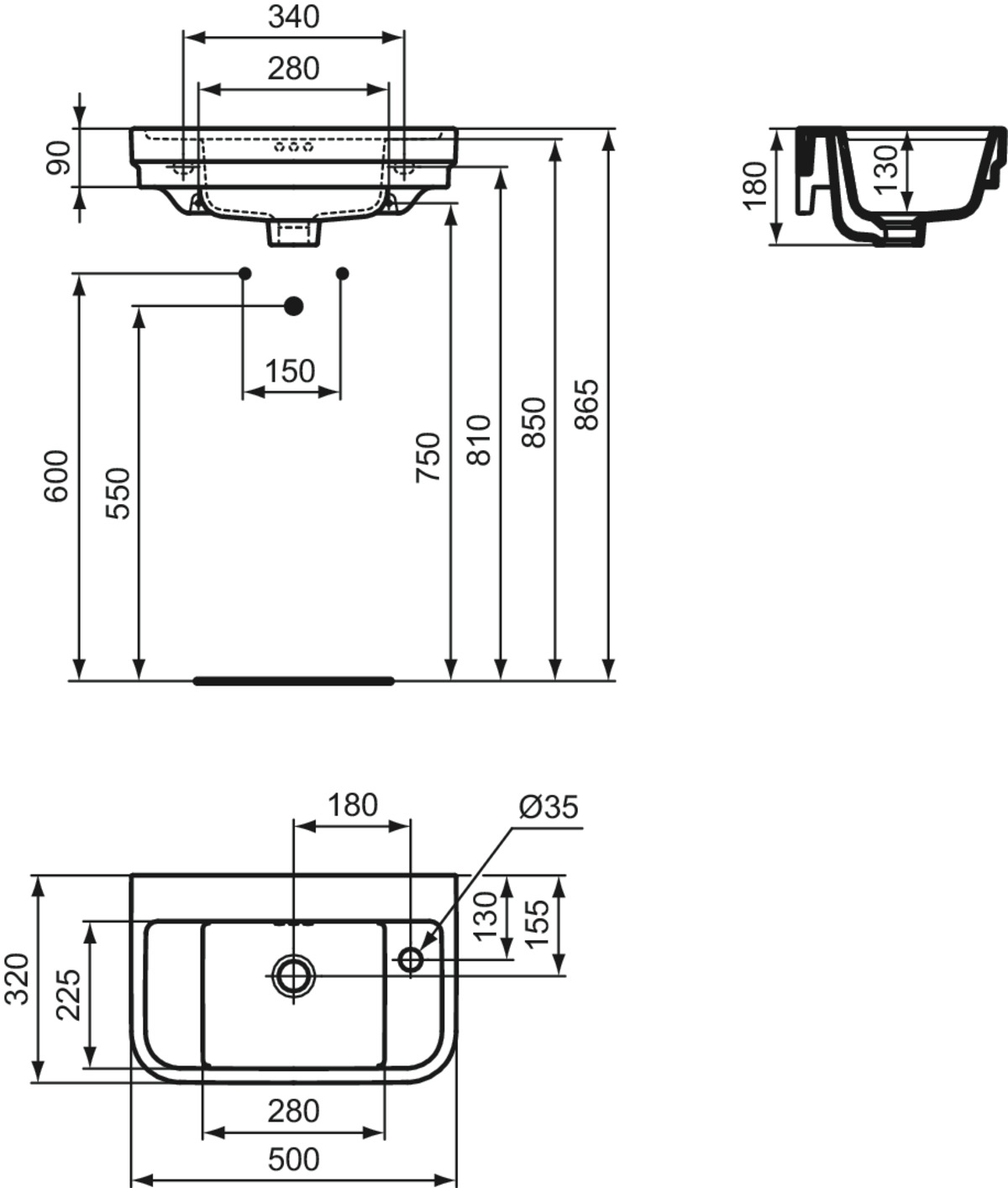 Подвесная раковина Calla 50х32х18 см, санфарфор, с отв. под смеситель, Ideal Standard