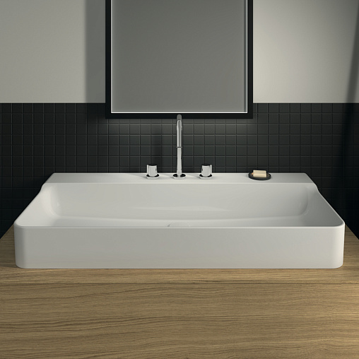 Подвесная раковина Conca 100х45х14,5 см, с 3 отверстиями под смеситель, без отверстия перелива, нижняя поверхность отшлифована, санфарфор, с отв. под смеситель, Ideal Standard