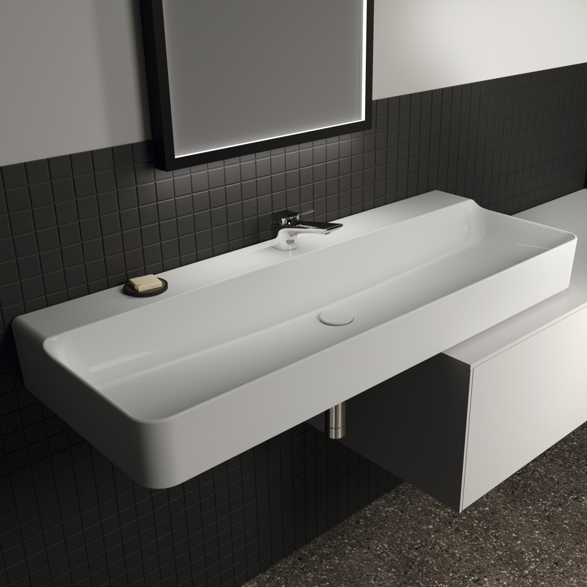 Подвесная раковина Conca 120х45х14,5 см, без отверстия перелива, нижняя поверхность отшлифована, санфарфор, с отв. под смеситель, Ideal Standard