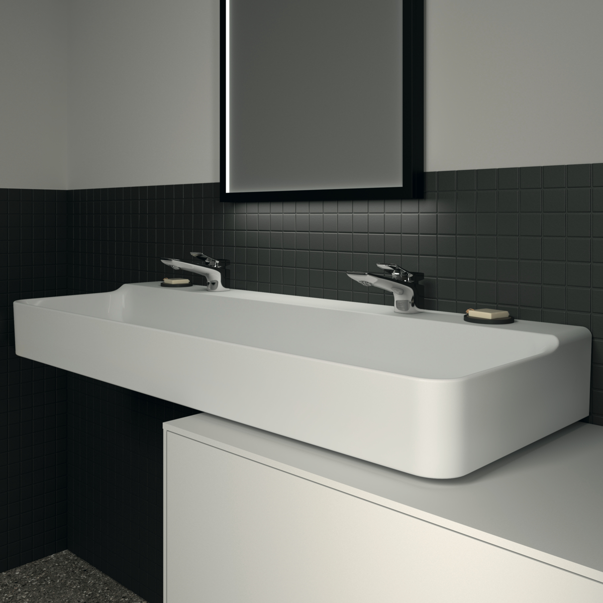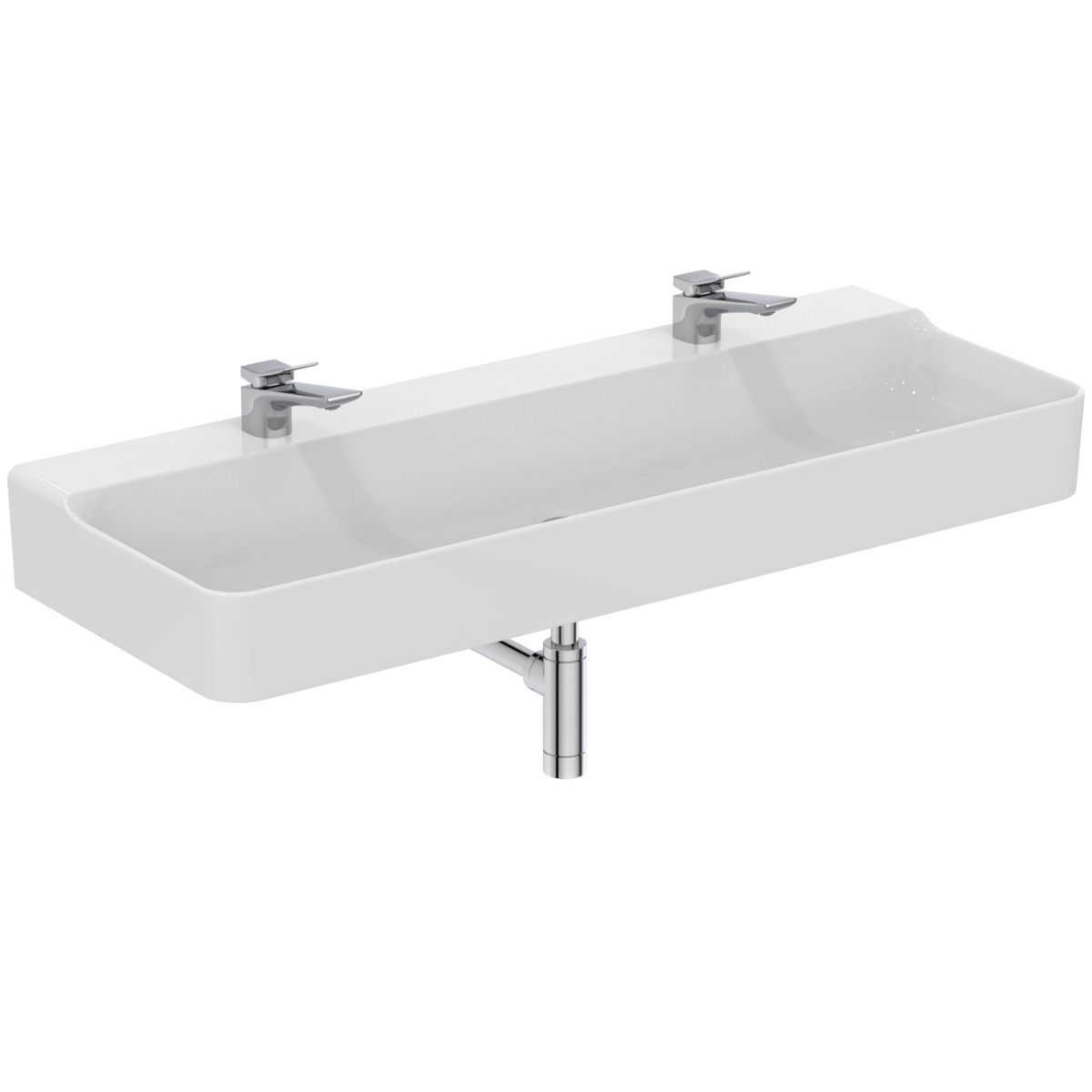Подвесная раковина Conca 120х45х14,5 см, без отверстия перелива, санфарфор, двойная, с отв. под смеситель, Ideal Standard