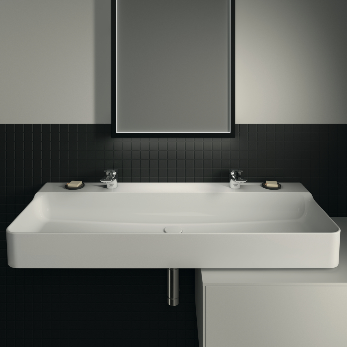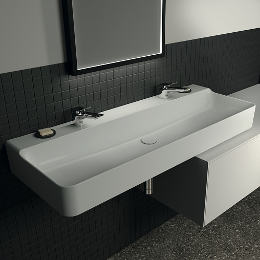 CONCA раковина 120 см с двумя отверстиями под смесители, без отверстия перелива