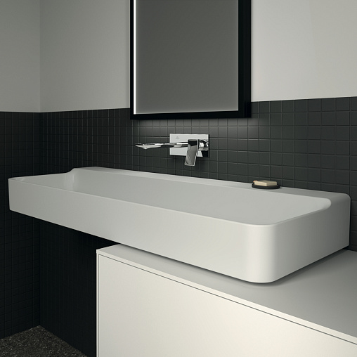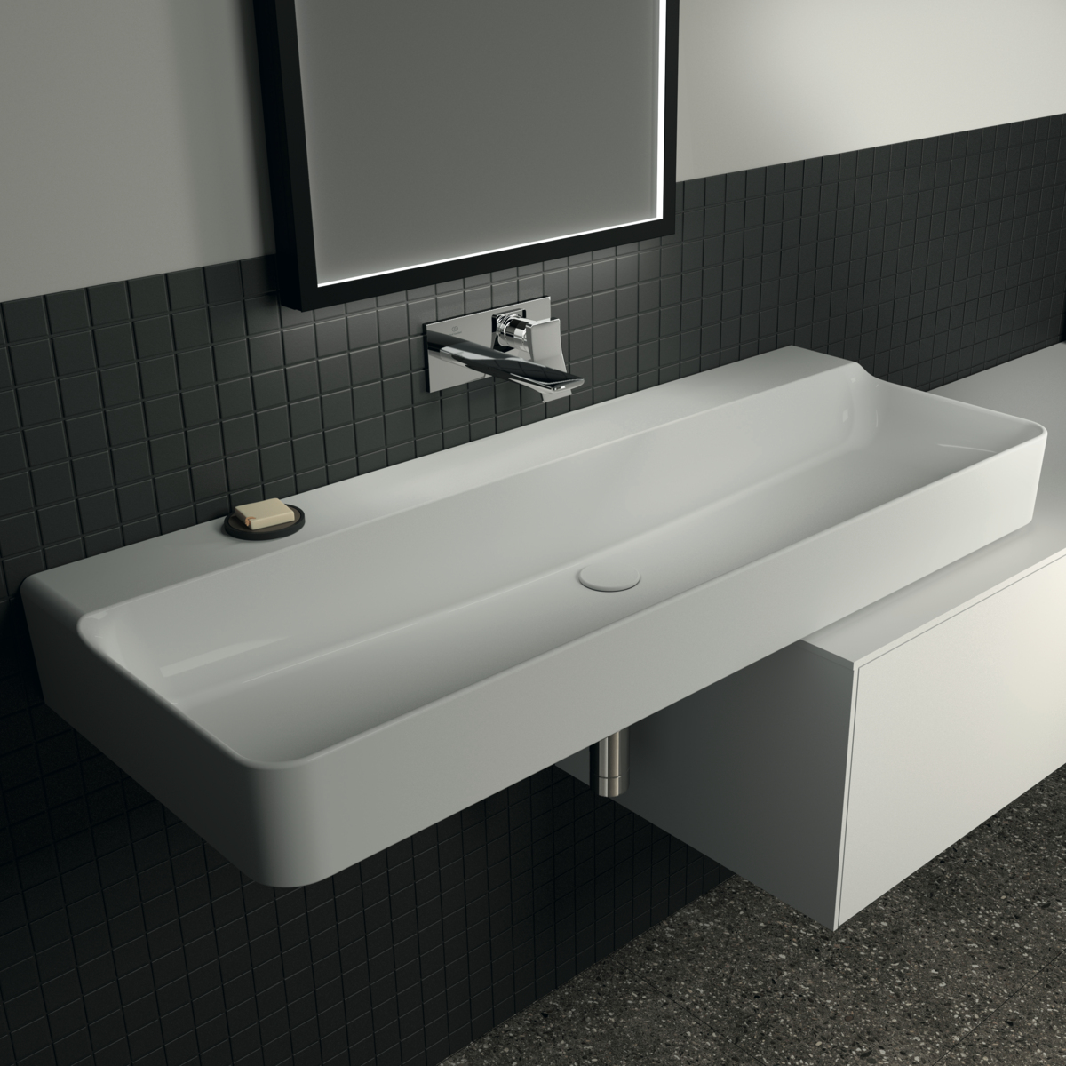 Подвесная раковина Conca 120х45х16,5 см, без отверстия перелива, нижняя поверхность отшлифована, санфарфор, Ideal Standard