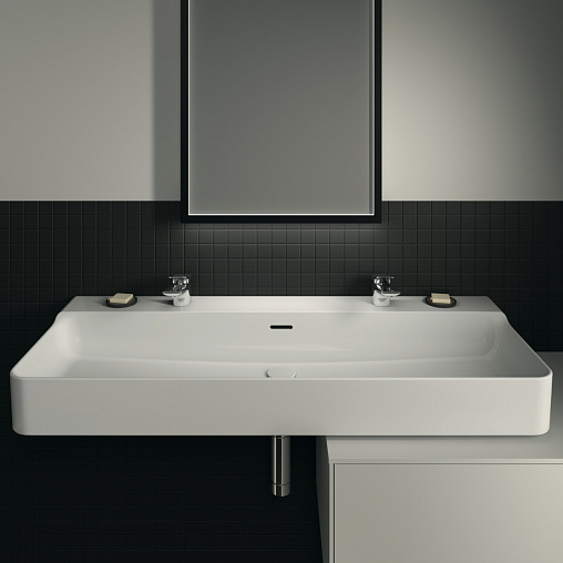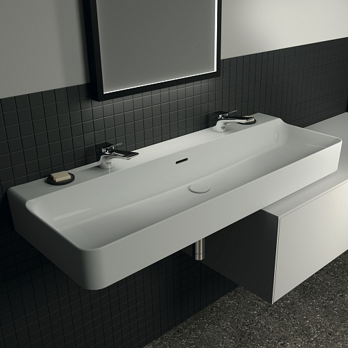 Подвесная раковина Conca 120х45х16,5 см, нижняя поверхность отшлифована, санфарфор, двойная, с отв. под смеситель, Ideal Standard