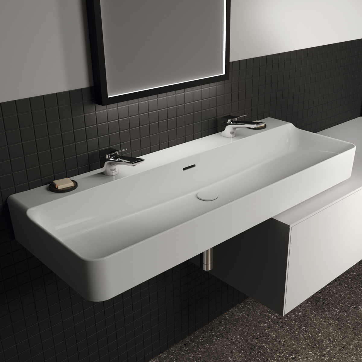 CONCA раковина 120 см с двумя отверстиями под смесители, с отверстием перелива