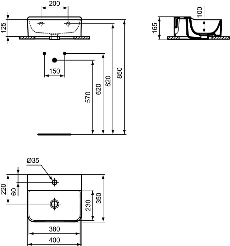 Подвесная раковина Conca 40х35х12,5 см, санфарфор, Ideal Standard