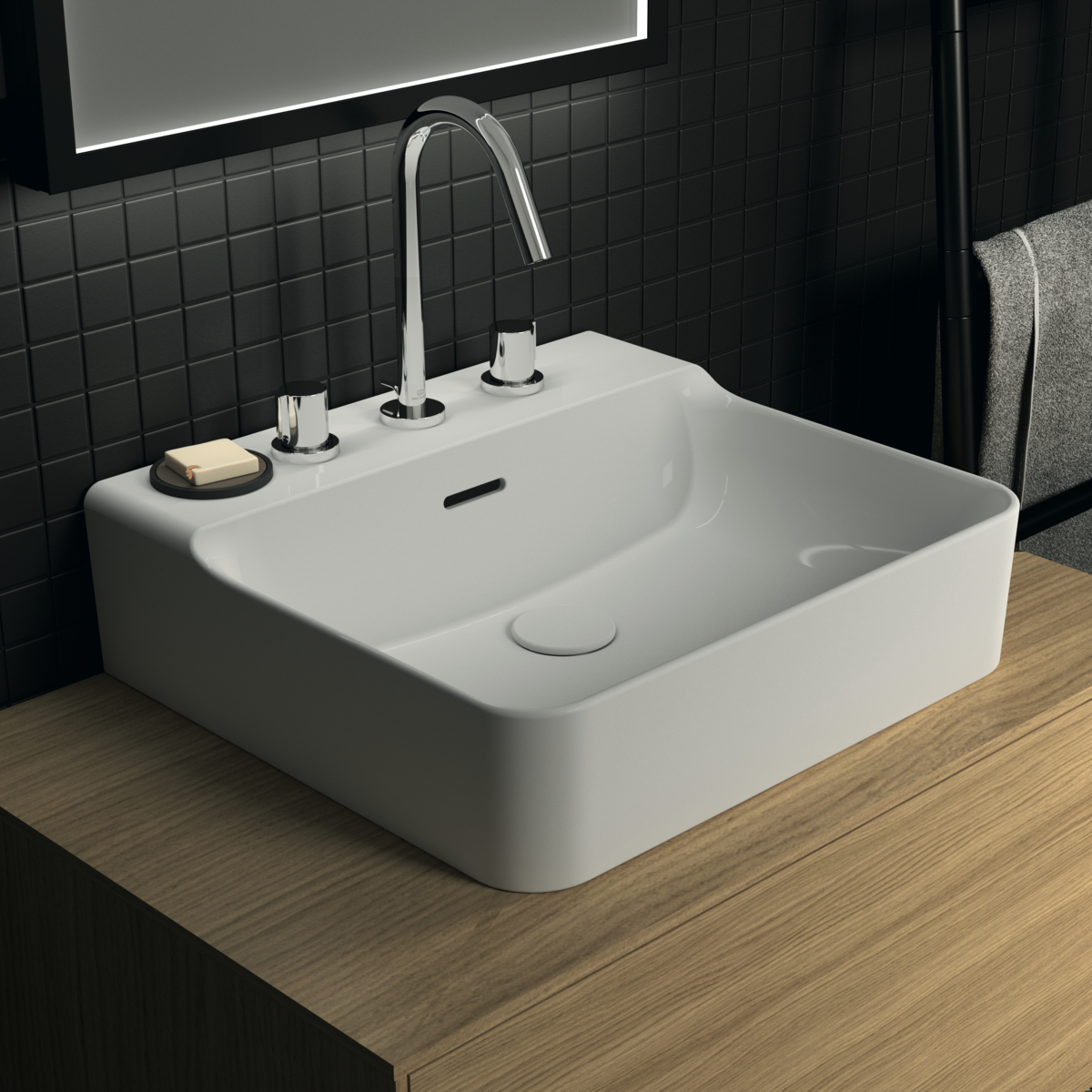 Подвесная раковина Conca 50х45х16,5 см, с 3 отверстиями под смеситель, санфарфор, с отв. под смеситель, Ideal Standard