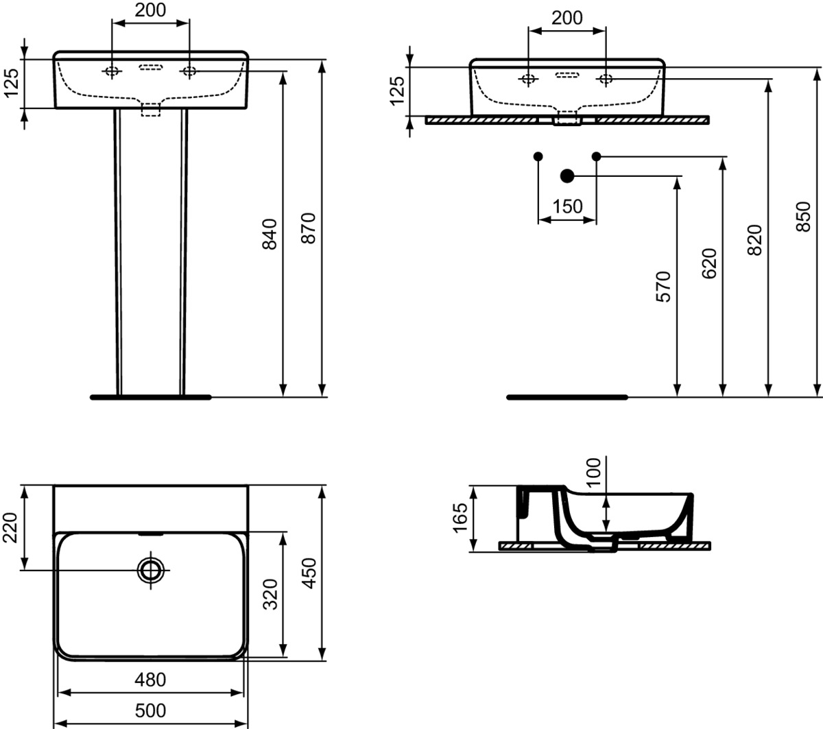 Подвесная раковина Conca 50х45х16,5 см, санфарфор, Ideal Standard