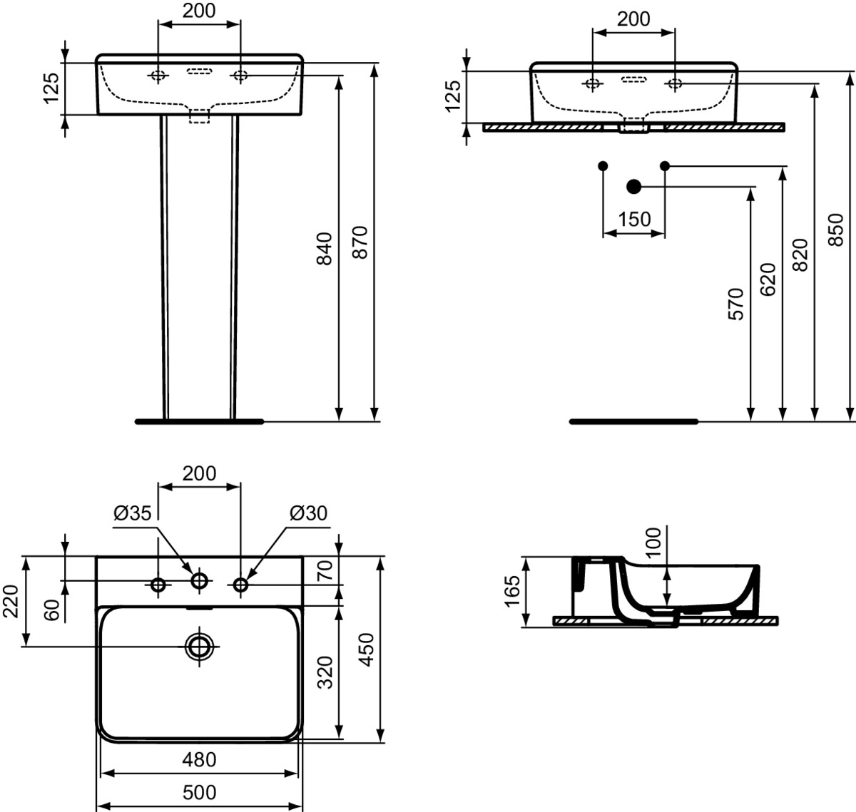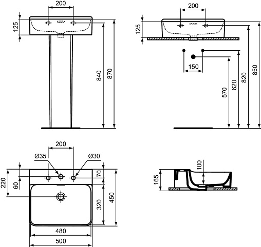 Подвесная раковина Conca 50х45х16,5 см, санфарфор, с отв. под смеситель, Ideal Standard