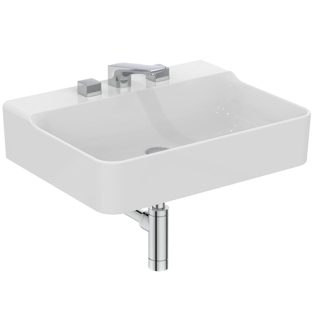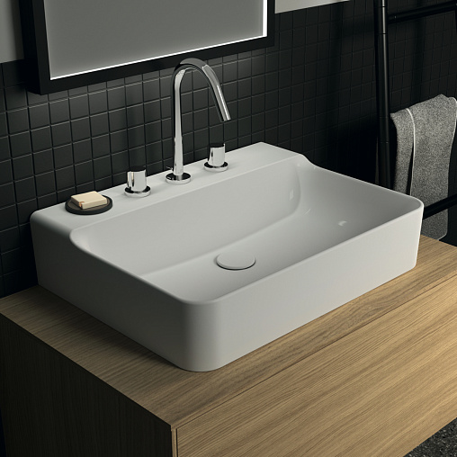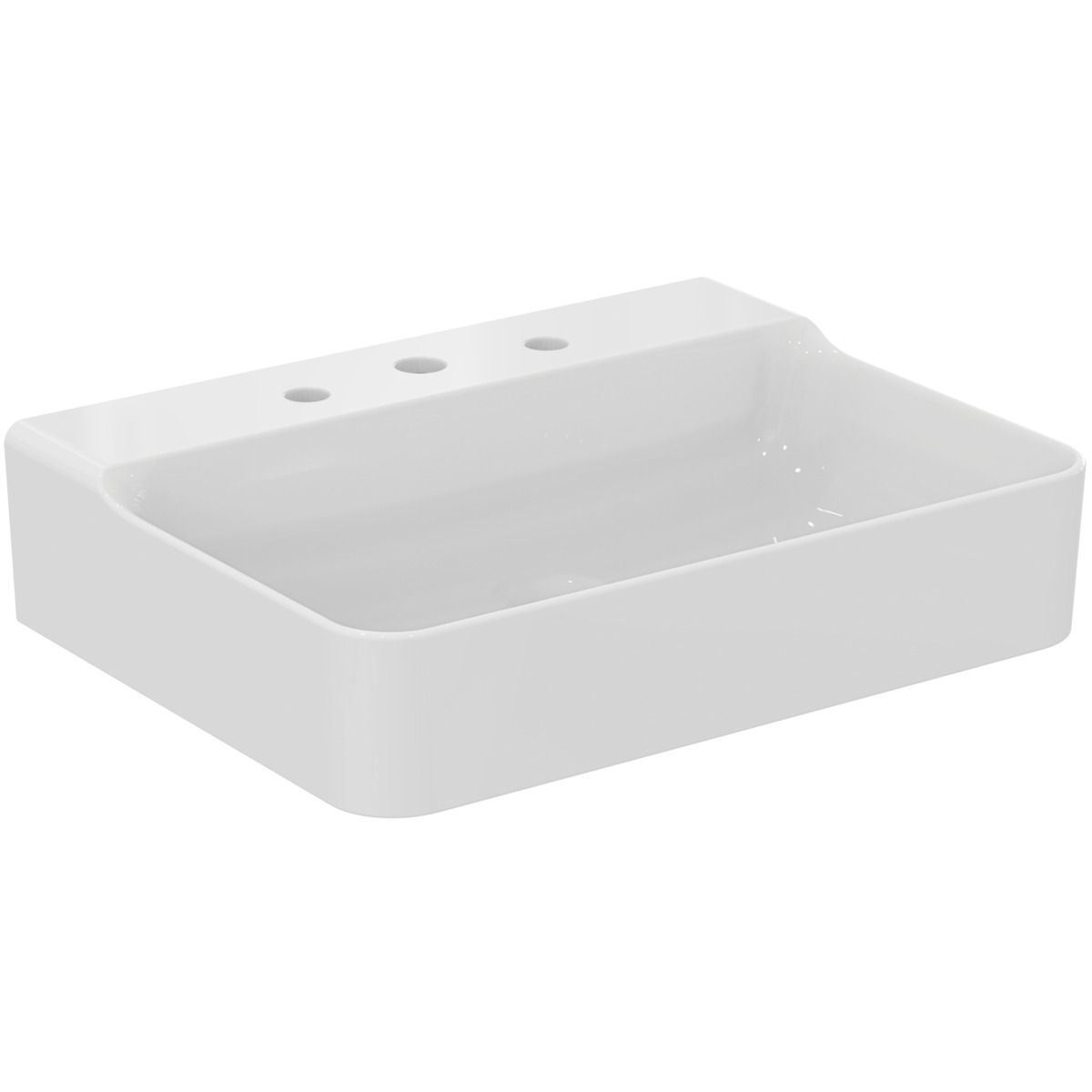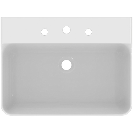 Подвесная раковина Conca 60х45х14,5 см, с 3 отверстиями под смеситель, без отверстия перелива, нижняя поверхность отшлифована, санфарфор, с отв. под смеситель, Ideal Standard