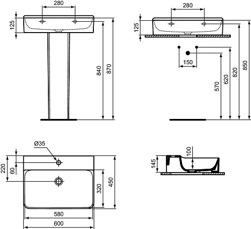 Подвесная раковина Conca 60х45х14,5 см, санфарфор, с отв. под смеситель, Ideal Standard
