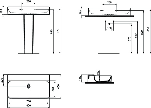 Подвесная раковина Conca 80х45х14,5 см, санфарфор, Ideal Standard