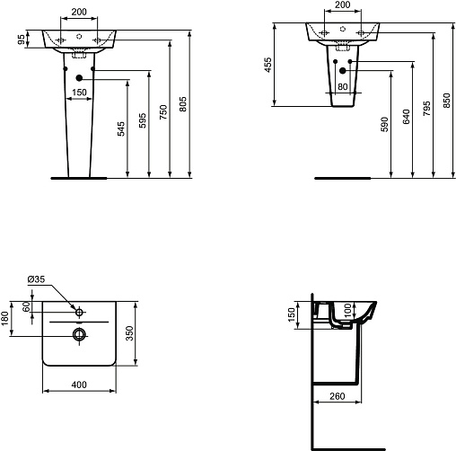 Подвесная раковина Connect Air 40х35х15 см, санфарфор, Ideal Standard