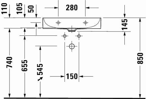 Подвесная раковина DuraSquare 60х40х14,5 см, санфарфор, с отв. под смеситель, Duravit